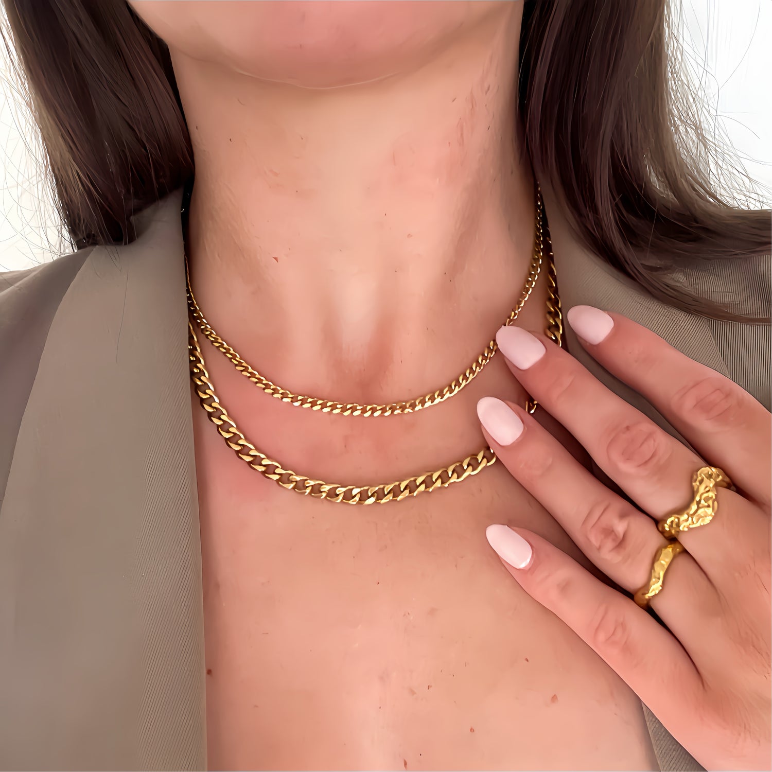 Most of our necklaces measure 43 centimeters, which is the standard size for women. The length can be adjusted down to 38 centimeters if you want a shorter necklace, or if you want to style several necklaces, as in the picture shown.